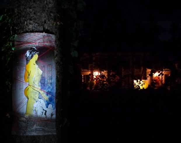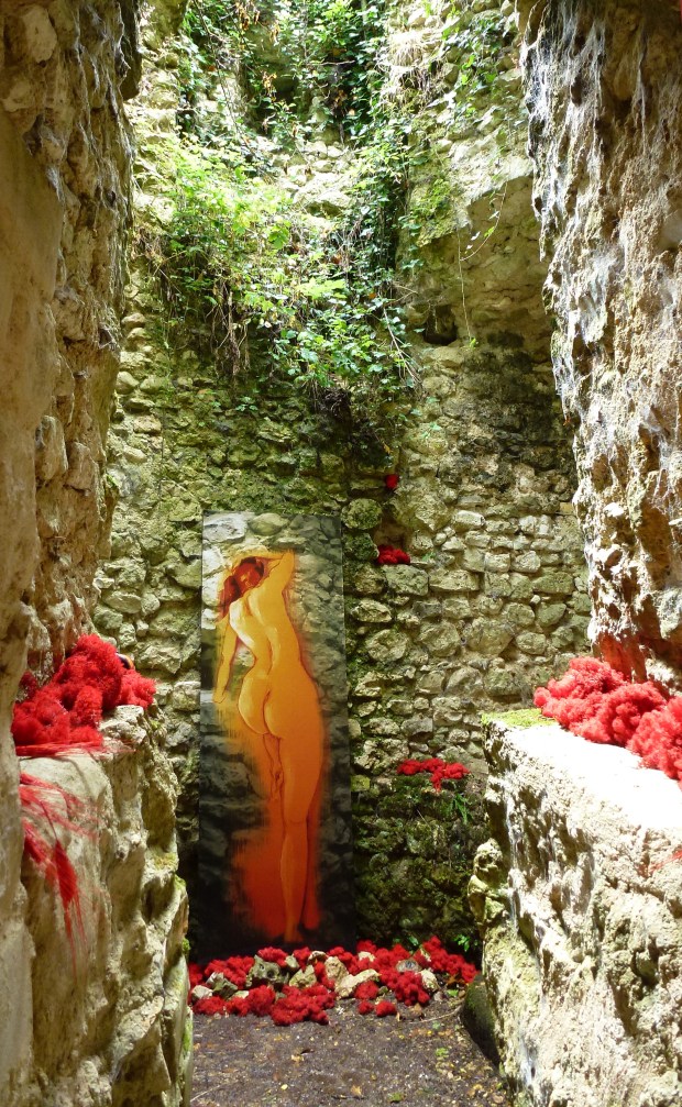 Festival « Le blé pousse » – Selommes – Juin 2014 – La Belle au Moi dormant est née de la rencontre improbable d’une jeune esquisse d’atelier et d’un vieux castel un peu branlant, bien que verdoyant. Merci à Liska Llorca pour son invitation.