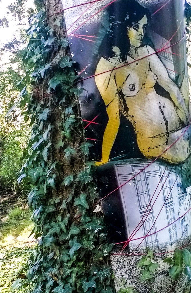 Toujours est-il que cette chaste dénudée se retrouva, quelques jours après, doublement enfermée dans sa tour, rendue invisible aux yeux de tous, et plus particulièrement aux élèves présents, par une intégriste catholique, opposante au genre artistique : Cachez ce nu que je ne saurais voir ! Stupidement censurée. Elle prit alors la poudre d’escampette et se démultiplia.