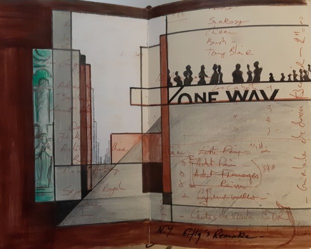 Ces carnets sont des palimpsestes, souvenirs de pérégrinations de Paris à la Bretagne, en passant par New-York, Shanghaï, Rome ou encore Osaka. Ces croquis rapides recouvrent parfois les notes de chantiers ou de réunions, billets d’humeur ou miscellanées. Les traces se superposent, se confient et s’unissent à vie. Au fil du temps, ils sont devenus la mémoire d’instants fugitifs et combien précieux.
