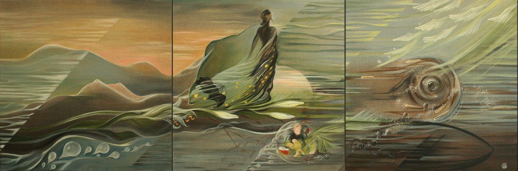 Extraits du poème d’Arthur Rimbaud. Peintures à l’huile sur toile de lin 80 x 80 cm. Triptyque 2.4 x 0.8m ©IdR 2010. Coll.particulière.